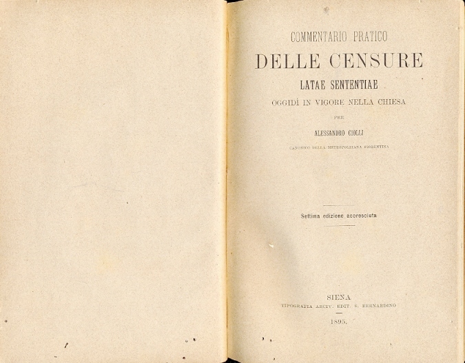 Commentario pratico delle censure, latae sententiae, oggidì in vigore nella chiesa. quantità