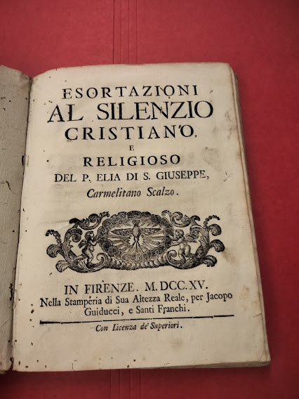 In 8°, p. perg. , pp. XI + 120. Testate. Finaline. Capilettera su piccole inc. Front. fig. Tracce di gore su alcune pp. che, tuttavia, non ledono il t. tracce di antichi tarli alle pag. interne dei piatti e sui margini di molte pag. che non interessano il testo. Rare fioriture. T. A.