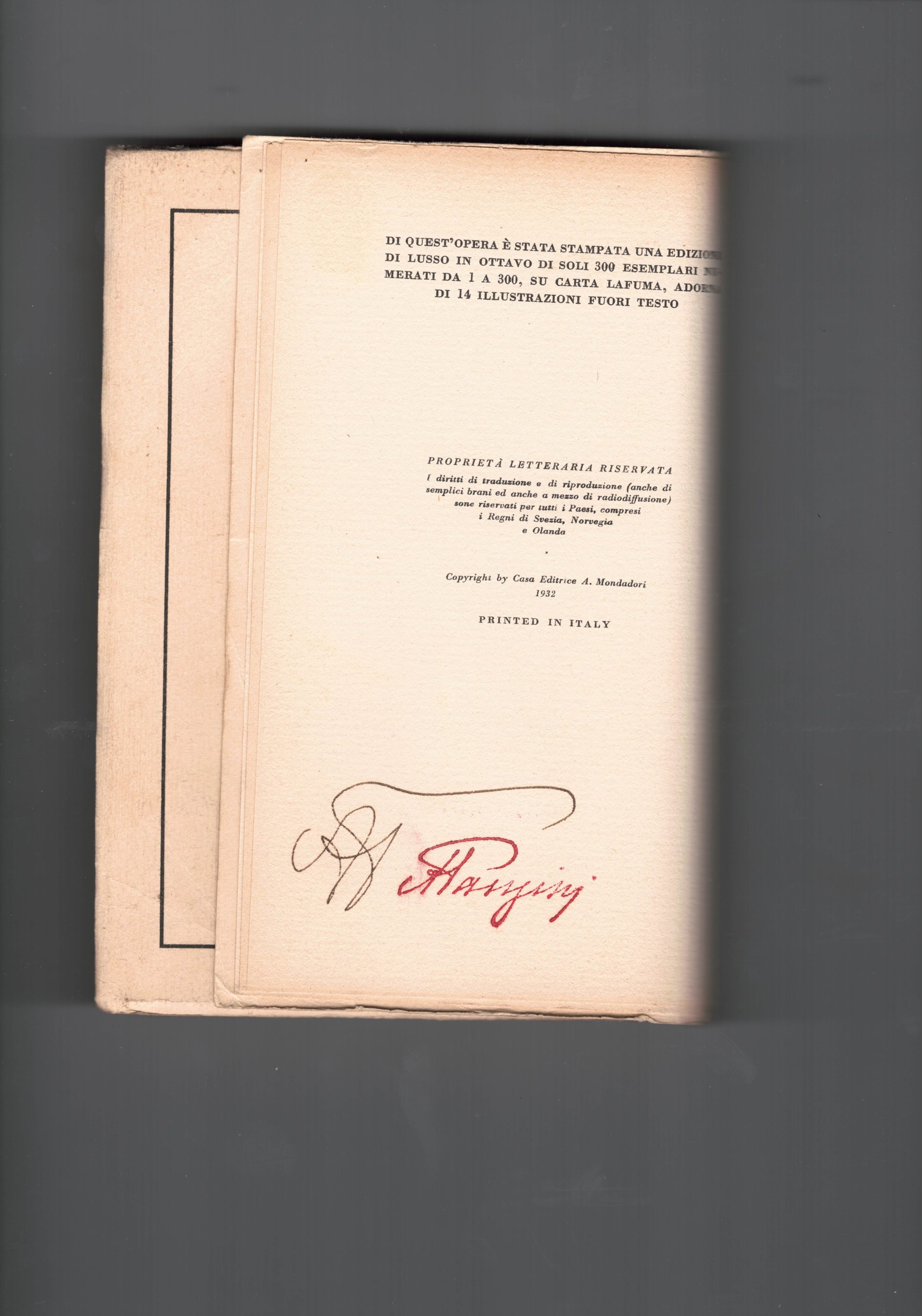 In 8°, br.,pp. 261. Cop. ill. Fioriture. Autografo dell’autore sul retro del front. Prima edizione.