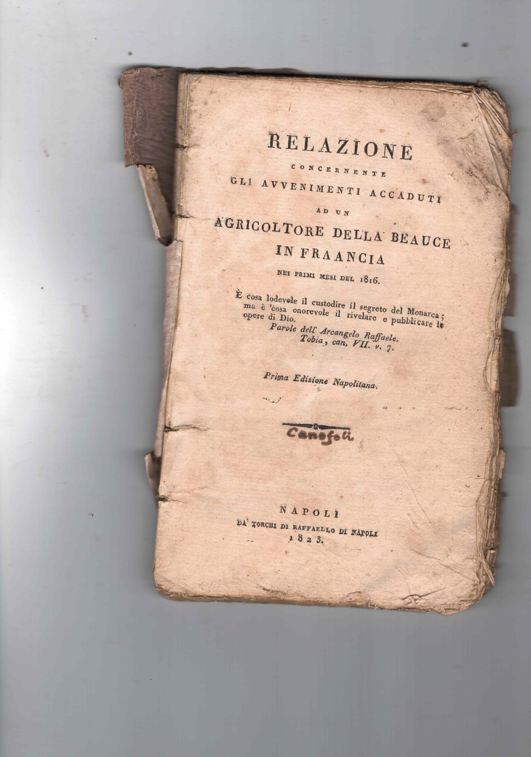 Relazione concernente gli avvenimenti accaduti ad un agricoltore della Beauce in Fraancia nei primi mesi del 1816.